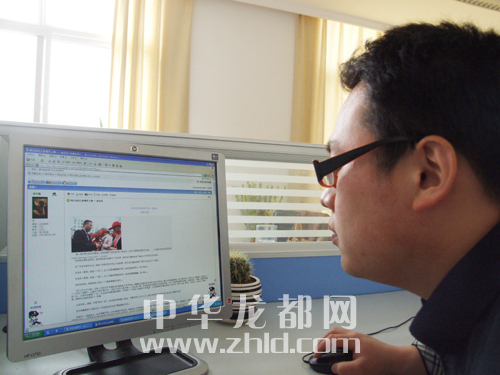 | 4月6日上午,一位網(wǎng)友在中華龍都網(wǎng)社區(qū)瀏覽帖子,了解孫自連事跡?! 。ㄆ萦?攝) | |