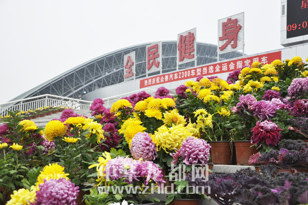周口市體育場(chǎng)觀(guān)眾入口處鮮花錦簇。