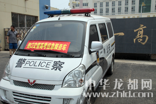 周口市交警支隊(duì)在每個考點(diǎn)設(shè)立了高考應(yīng)急服務(wù)車。
