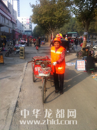 ????由于周口荷花市場北門附近有幾家經(jīng)營服飾的大型賣場和許多經(jīng)營各色小吃的店鋪,因而這里極具人氣。據(jù)說,每天從此北門經(jīng)過的市民超過10萬人。人一多,地面的衛(wèi)生狀況自然不容樂觀?!捌綍r,我們是‘一班一人’清掃,但是到了節(jié)假日,人流量往往是平時的幾倍,垃圾量自然增多,我會和另外一位同事分頭打掃?!蓖跸架幷f。