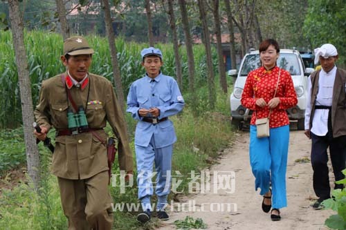 ????就是這樣一群面朝黃土背朝天的農(nóng)民,依據(jù)豫劇折子戲,自編自導(dǎo)自演,拍攝了一部時(shí)長(zhǎng)30分鐘的微電影——《掩護(hù)》。錢(qián)店鎮(zhèn)文化站站長(zhǎng)王娟介紹道,錢(qián)銀行愛(ài)好文藝,去年春節(jié)的時(shí)候,他就在家里自編自演了一臺(tái) “家庭春晚”。當(dāng)時(shí),村民把他家圍得水泄不通。今年是抗戰(zhàn)勝利70周年,錢(qián)銀行又突發(fā)奇想,自己創(chuàng)作劇本,以抗戰(zhàn)期間農(nóng)民掩護(hù)八路軍、八路軍保護(hù)農(nóng)民的故事為主線,自籌資金1萬(wàn)多元拍攝微電影。經(jīng)過(guò)幾個(gè)月的籌備,現(xiàn)在終于正式開(kāi)拍了。