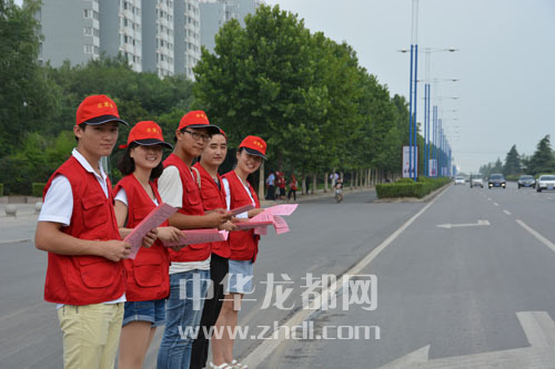 ????7月9日,周口市公安局文昌分局組織30名青年志愿者走上街頭,開展各項(xiàng)志愿服務(wù)活動(dòng),助力省級(jí)文明城市創(chuàng)建工作。圖為青年志愿者走上街頭發(fā)放宣傳頁(yè),宣傳交通法規(guī)。