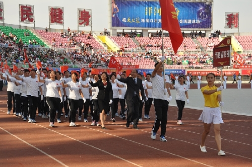 ????當日16時,國旗方陣、會旗方陣、彩旗隊、裁判員、運動員依次入場,一個個意氣風發(fā)的團隊引來現(xiàn)場觀眾陣陣掌聲和歡呼聲:周口川匯區(qū)代表團首先入場,他們步伐矯健,英姿勃發(fā);市委辦公室代表團精神抖擻,意氣風發(fā);市委宣傳部代表團邁著矯健的步伐走向主席臺……