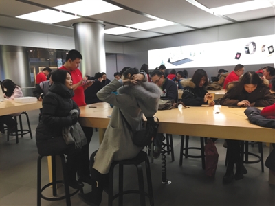 ????12月11日,蘋果王府井直營店售后服務等待區(qū)。 實習生 孫亞慧 攝