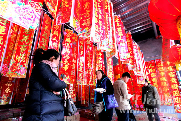 ????????近日在周口華耀城春聯(lián)批發(fā)市場小商販忙著進(jìn)貨,市民精心選購。