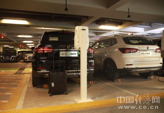 在上海虹橋機(jī)場(chǎng)的停車樓,由兩排充電樁構(gòu)成的專屬停車區(qū)甚是醒目,專屬停車位上的榮威eRX5車頭標(biāo)志閃爍的呼吸燈表示車輛正處于充電狀態(tài)。