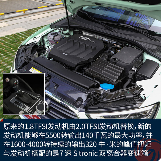 動力的改變也許是此次另一個升級的重點,除了1.4TFSI發(fā)動機,原來的1.8TFSI發(fā)動機將由2.0TFSI發(fā)動機替換,新的發(fā)動機能夠在5500轉(zhuǎn)輸出最大功率為140千瓦,并在1600-4000轉(zhuǎn)持續(xù)的輸出320 ?!っ椎姆逯蹬ぞ?。與兩臺發(fā)動機搭配的7 速 S tronic 雙離合器變速箱。憑借動力的優(yōu)勢,新A3 40TFSI車型的百公里加速時間縮短了0.1秒,但是油耗會相應的有所減少。