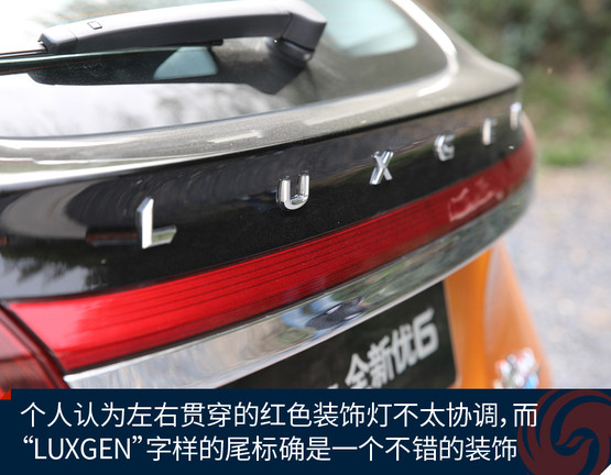 車身的側(cè)面依然是溜背的造型,這也是這臺車最大的特點。車尾的造型也基本沒有太大的變化,但是細(xì)看卻有著質(zhì)一般的飛躍,車燈為全紅色,車標(biāo)變成了“納智捷”的英文字母,牌照架周邊的質(zhì)感明顯比老款好看了許多,不過個人對這個左右貫穿的紅色裝飾保留意見,認(rèn)為沒有它或許更好。