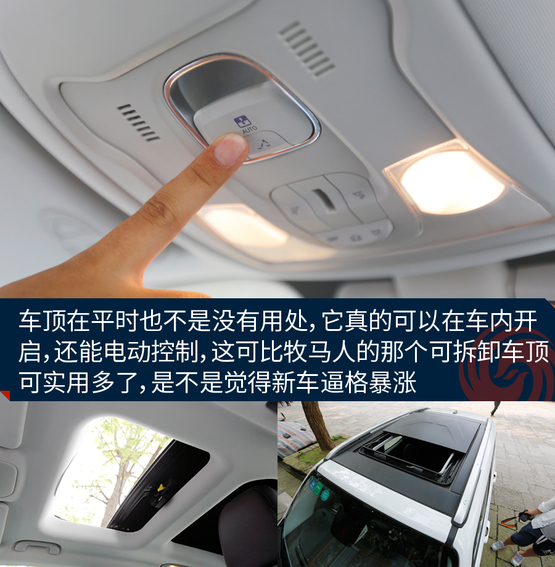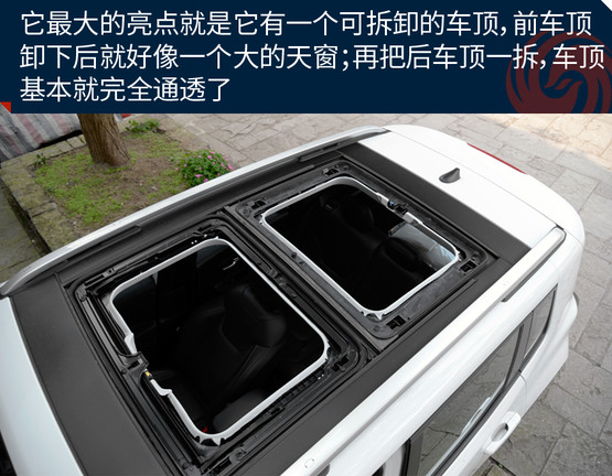 敞篷版車(chē)型將普通車(chē)型的天窗玻璃全部換成了可拆卸的頂棚,拆卸過(guò)程十分方便,即使是女性車(chē)主也能輕松拆卸。而且最重要的一點(diǎn)是這個(gè)頂棚不只是樣子貨,平時(shí)放在車(chē)頂時(shí),車(chē)內(nèi)可進(jìn)行操作,把它變成一個(gè)電動(dòng)天窗來(lái)用,是不是感覺(jué)特高端?