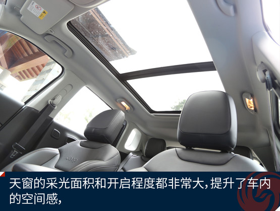 新指南者橫向空間和腿部空間表現(xiàn)都不錯(cuò),在頭部空間上略有欠缺,后排在坐直的情況下,頭部空間比較壓抑,幸好全景天窗可以彌補(bǔ)這一點(diǎn),指南者的全景天窗擴(kuò)展了車內(nèi)的采光面積及視覺(jué)廣度。