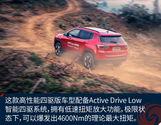如果你想去挑戰(zhàn)一點(diǎn)不平凡,那么你需要的是Trailhawk版本,Trailhawk版本在外觀上也變得更加強(qiáng)悍,突出了Jeep的越野本性,這款高性能四驅(qū)版車型配備Jeep家族獨(dú)有的Active Drive Low智能四驅(qū)系統(tǒng),擁有低速扭矩放大功能,極限狀態(tài)下,可以爆發(fā)出4600Nm的理論最大扭矩,輕松應(yīng)對(duì)復(fù)雜的路況挑戰(zhàn)。在路況良好時(shí),后軸智能電子分離技術(shù),會(huì)讓車輛以前驅(qū)狀態(tài)形式,獲得更好的燃油經(jīng)濟(jì)性;當(dāng)路況比較復(fù)雜需要更大抓地力時(shí),會(huì)自動(dòng)切換到四驅(qū)狀態(tài)。專業(yè)陡坡緩降功能,HDC陡坡緩降系統(tǒng)可在各種行駛條件的下坡行駛保持車速。