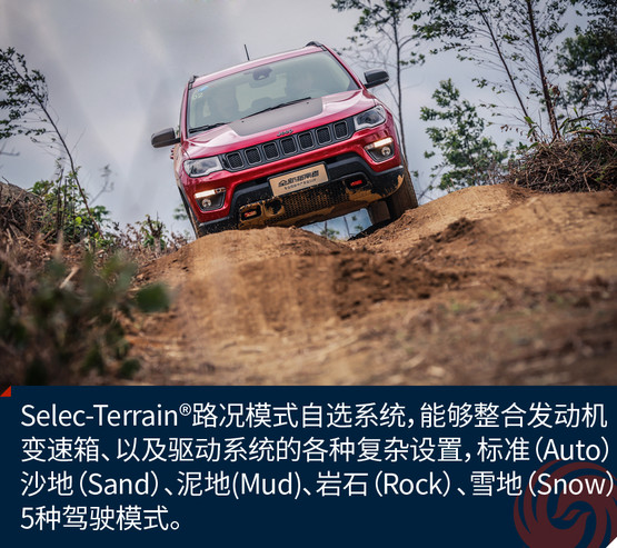 Selec-Terrain?路況模式自選系統(tǒng),能夠整合發(fā)動(dòng)機(jī)、變速箱、以及驅(qū)動(dòng)系統(tǒng)的各種復(fù)雜設(shè)置,帶來(lái)同級(jí)最豐富的標(biāo)準(zhǔn)(Auto)、沙地(Sand)、泥地(Mud)、巖石(Rock)、雪地(Snow)5種駕駛模式。車主只需通過(guò)旋鈕,即可一鍵實(shí)現(xiàn)車輛駕駛模式的轉(zhuǎn)換,系統(tǒng)會(huì)自動(dòng)調(diào)節(jié)包括油門靈敏度、換擋邏輯等整車12大項(xiàng)控制單元,讓車輛各系統(tǒng)的匹配調(diào)整到最適合目前路況的狀態(tài)。