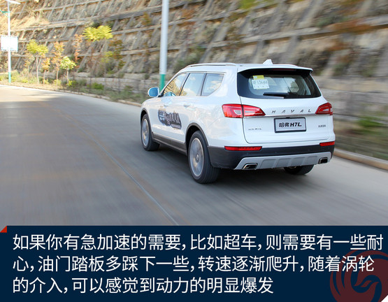 如果你有急加速的需要,比如超車,則需要有一些耐心,油門踏板多踩下一些,轉(zhuǎn)速逐漸爬升,隨著渦輪的介入,可以感覺到動(dòng)力的明顯爆發(fā)。