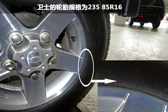 ????衛(wèi)士冰火版的輪胎采用了扁平比厚達(dá)85的輪胎,胎寬為235mm,純粹的越野取向,粗大的輪胎顆粒可以應(yīng)對野外各種地面條件,依然提供可靠的抓地,但面對城市中的柏油路面,則不一定能提供良好的抓地。