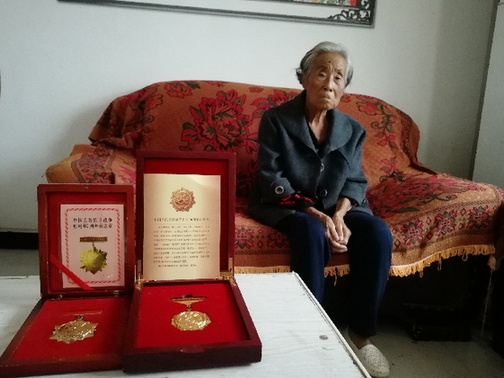 袁義英,1930年10月出生在山東省濱州市鄒平縣,現(xiàn)居住在西華縣紅花集鎮(zhèn)龍池頭村。1938年隨父親來(lái)到部隊(duì),父親犧牲后她被組織安排在后方醫(yī)院當(dāng)護(hù)士,1950年隨丈夫落戶(hù)在西華縣龍池頭村。