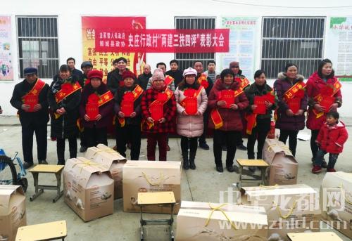 中華龍都網(wǎng)訊(周口報(bào)業(yè)全媒體記者 徐松 通訊員 閆紅旗)1月21日上午,鄲城縣政協(xié)和汲冢鎮(zhèn)黨委、政府,在縣政協(xié)駐村幫扶點(diǎn)史莊村召開“兩建三扶四評(píng)”表彰大會(huì),為評(píng)出的16戶孝老愛親戶、脫貧致富戶、誠信守法戶、清潔衛(wèi)生戶頒獎(jiǎng)。