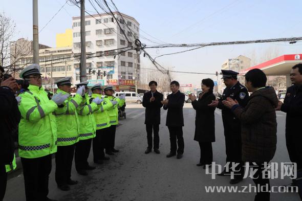 一路慰問一路播撒黨的溫暖。在鄲城縣城科技大道與人民路口,趙素萍一行專門下車慰問了一線交警。“冷不冷?小伙子。這衣服暖和不?”趙素萍用手摸了摸一位交警的值勤服問。“不冷,這是俺縣里才配發(fā)的保暖服,防雪防風(fēng)防雨。再說了,省領(lǐng)導(dǎo)來慰問,俺心里更暖和?!苯痪臋C靈回答,把大家逗得哈哈大笑。趙素萍說:“你們不畏嚴寒的辛勤付出保障了城市的暢通,我代表省委、省政府向全縣民警同志們致以節(jié)日的問候,并通過你們向你們的家人表示節(jié)日的祝福,祝愿大家新春愉快,闔家幸福,身體健康?!?/p>