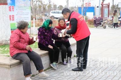 細(xì)心的志愿者們還為健身、散步、游玩的市民準(zhǔn)備了開水和杯子,為他們驅(qū)走寒意、溫暖雙手、滋潤心田。“俺孩兒在家也沒想著給我倒杯水喝啊,恁還大老遠(yuǎn)給我送來!”接過志愿者手中的開水,一位老人十分激動(dòng)。