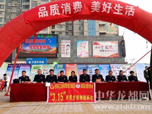 中華龍都網(wǎng)訊(周口報(bào)業(yè)全媒體記者 杜欣 文/圖)3月15日上午,淮陽(yáng)縣消費(fèi)者協(xié)會(huì)組織當(dāng)?shù)叵嚓P(guān)職能部門,在潤(rùn)德廣場(chǎng)舉辦2018年3·15國(guó)際消費(fèi)者權(quán)益日紀(jì)念大會(huì)暨大型宣傳咨詢服務(wù)活動(dòng)。淮陽(yáng)縣人大副主任、縣消費(fèi)者協(xié)會(huì)會(huì)長(zhǎng)霍偉,淮陽(yáng)縣人民政府副縣長(zhǎng)薛燕等參加活動(dòng)。活動(dòng)現(xiàn)場(chǎng),職能部門專門設(shè)立了執(zhí)法“別動(dòng)隊(duì)”,在接受消費(fèi)者現(xiàn)場(chǎng)投訴后,隨時(shí)出動(dòng)處理。