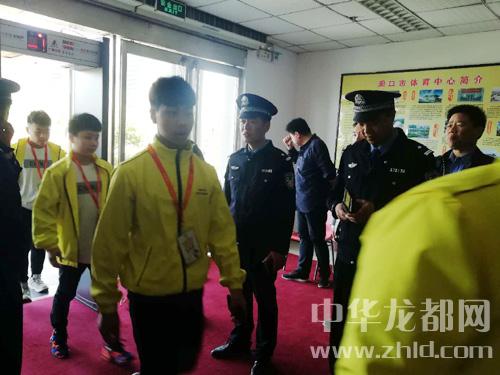 在市體育館的入口處設(shè)有安檢門,門口兩側(cè)各有4名民警檢查進(jìn)入場(chǎng)館的人員證件,無論是工作人員還是運(yùn)動(dòng)員、裁判員都必須憑組委會(huì)發(fā)放的證件方能進(jìn)入。另有2名民警手持金屬探測(cè)儀,在進(jìn)入的人員身上探測(cè)可疑金屬,以防止有人誤帶管制刀具等違禁品進(jìn)入場(chǎng)館內(nèi)。進(jìn)入當(dāng)日舉行舉重比賽的場(chǎng)館后,記者看到有身穿警服的民警在現(xiàn)場(chǎng)不時(shí)走動(dòng),維持賽場(chǎng)秩序。