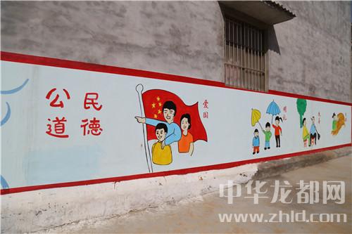 當(dāng)日16時(shí)許,記者在該村看到,干凈整潔的水泥路像玉帶在村中盤(pán)旋,街道兩側(cè)栽植不久的小樹(shù)在向人們招手,坑塘四周干凈整潔,綠樹(shù)環(huán)繞,塘水清澈,梳理有致,房前屋后干凈整潔……天空中雖然下著雨,但是記者遠(yuǎn)遠(yuǎn)的就聽(tīng)到了群眾的談笑聲和機(jī)械的轟鳴聲,走近,原來(lái)是村民們不顧天氣下雨,依然在自發(fā)地進(jìn)行道路清理工作。記者看到,該村墻體文化更讓村子增加了很多的“內(nèi)涵”。