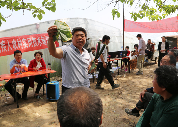 5月10日,在鹿邑縣馬鋪鎮(zhèn)完樓村殘疾人士付天軍的培訓(xùn)基地——蔬菜種植合作社助殘大棚內(nèi),來自鹿邑縣馬鋪鎮(zhèn)、渦北鎮(zhèn)產(chǎn)業(yè)集聚區(qū)的150多名建檔立卡貧困殘疾人,齊聚這里免費(fèi)學(xué)習(xí)黃瓜種植技術(shù),付天軍在大棚內(nèi)手把手地進(jìn)行指導(dǎo),來自華陽學(xué)校的農(nóng)業(yè)專家李中蘭也應(yīng)邀在大棚內(nèi)對(duì)常見的病蟲害進(jìn)行詳細(xì)講解。