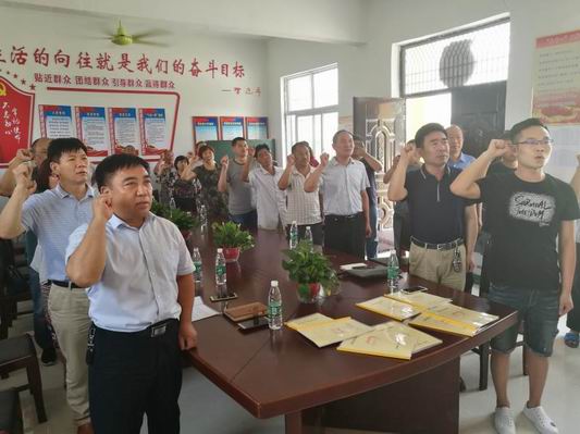 閆振清帶領(lǐng)全體黨員重溫入黨誓詞并與大家一起給張寨村黨支部捐款共計(jì)3000余元。