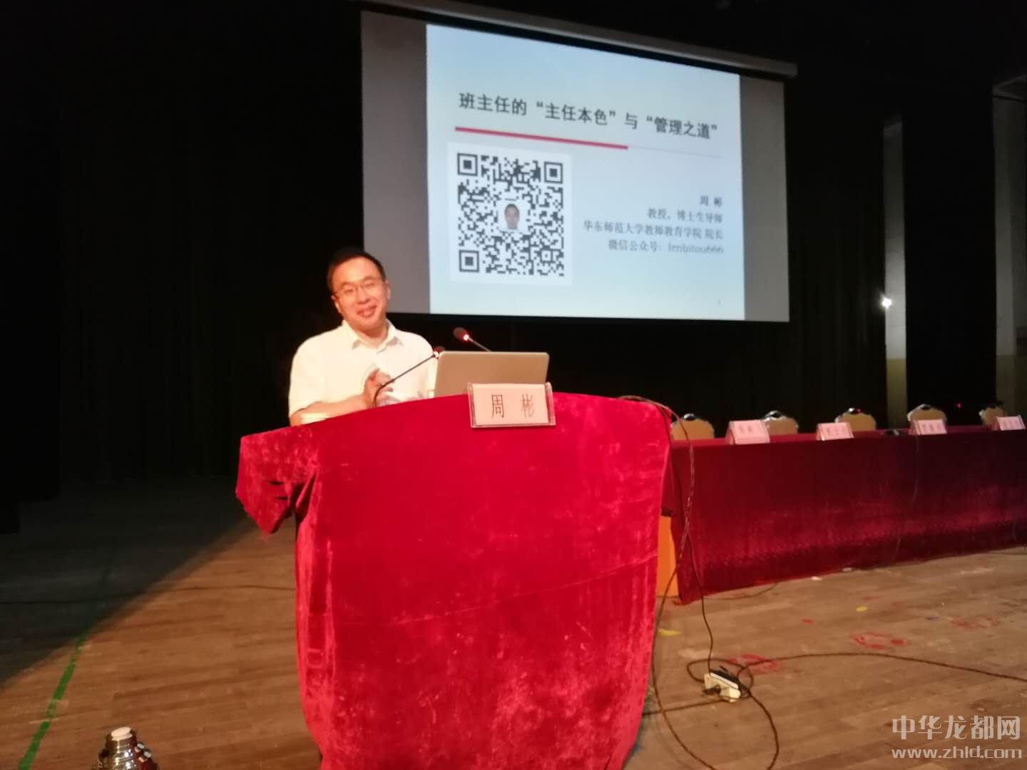 上午,簡短的開班儀式后,華東師范大學教師教育學院院長、教育學博士周彬圍繞班主任的“主任本色”與“管理之道”開講,他結(jié)合自身工作實踐經(jīng)驗詳細闡述了班主任要處理的四種關系,即:班主任與老師的關系、班主任與學生的關系、班主任與學生家長的關系和班主任與班委的關系。他詼諧語言、淵博的學識贏得了參訓人員的陣陣掌聲。