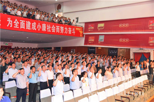 會上,盧偉帶領(lǐng)與會人員進行脫貧攻堅全面沖刺集體宣誓。