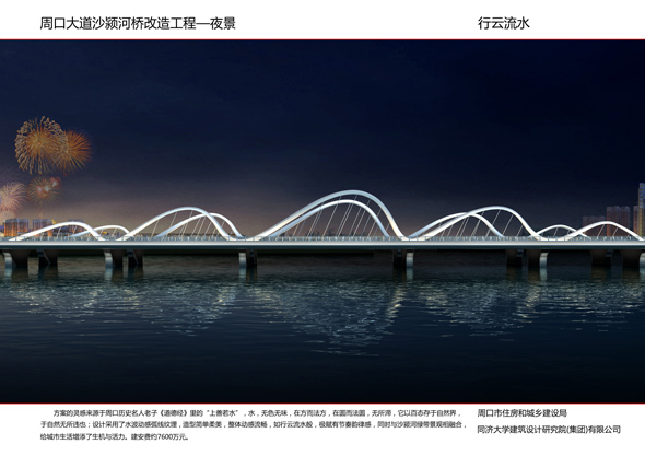 今后一個(gè)時(shí)期,結(jié)合水系的綜合治理,我市還將陸續(xù)開工建設(shè)數(shù)十座橋梁,并且秉承一橋一風(fēng)格的設(shè)計(jì)特色,展示出每座橋梁的文化內(nèi)涵,通過幾年的努力,把周口中心城區(qū)打造成百座橋梁薈萃、風(fēng)格各異、特色鮮明的橋梁博物館。