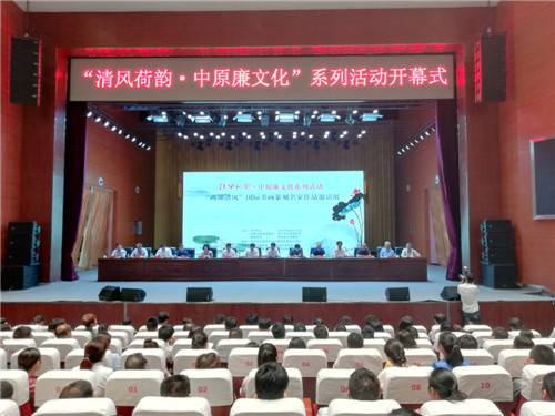 7月24日上午,“清風(fēng)荷韻·中原廉文化”書畫篆刻名家作品展暨國家治理名家大講堂等系列活動在淮陽縣舉行。省紀(jì)委監(jiān)察委宣傳部長袁勇、省社科院黨委副書記周立、河南日報(bào)報(bào)業(yè)集團(tuán)大河網(wǎng)總編輯孟磊、中央黨?!秾W(xué)習(xí)時(shí)報(bào)》副總編輯楊英杰及淮陽縣委書記馬明超、縣長王毅等出席?;顒佑墒形N⒓o(jì)委書記、監(jiān)察委主任劉孟連主持。