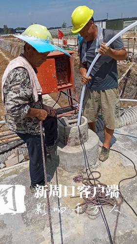 賈魯嘉苑項目L地塊施工現(xiàn)場,建筑工人正在對降水井進行抽水
