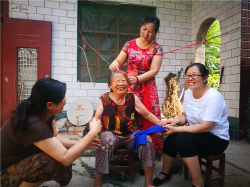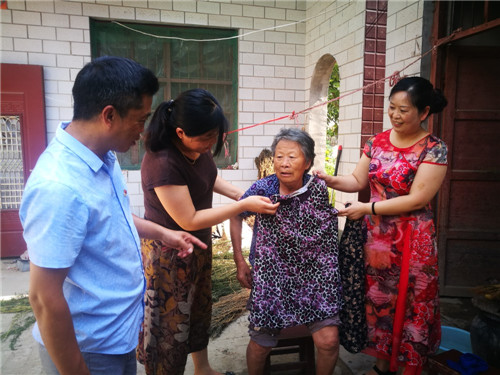 7月29日上午,周口市太康縣五里口鄉(xiāng)桂李行政村82歲老人石鳳蘭格外高興:該縣工商局翟保紅等3名駐村女扶貧干部相約來到她家里看望,并為她買來新衣服等?!皼]想到老了老了,又多了3個好閨女,這日子真是越過越好啊!”石鳳蘭老人高興地說。