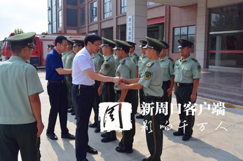 7月31日,開發(fā)區(qū)黨委書記田林,開發(fā)區(qū)管委會(huì)主任王文峰,開發(fā)區(qū)黨委委員、市公安局太昊路分局局長孟慶嶺等來到開發(fā)區(qū)消防大隊(duì),走訪慰問。