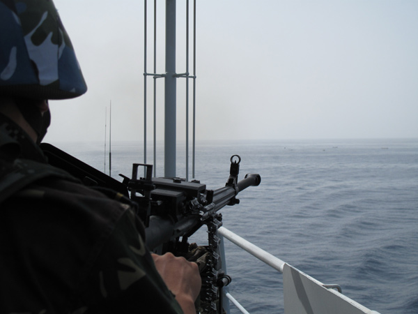 2009年3月8日,??谂炞o送著“菲律賓快運”、“馬士基大西洋”、“西基諾斯”、“貴華”號四條商船,浩浩蕩蕩,一路向前。