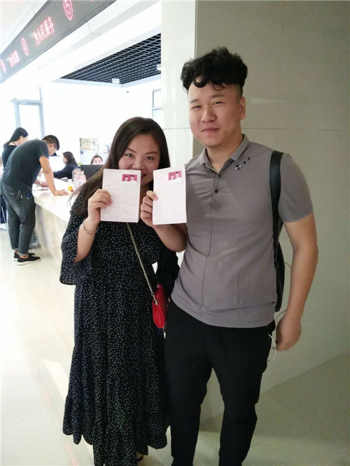 市民劉麗(化名)和男友相識多年,他們從朋友發(fā)展到戀人,今天一早就來排隊(duì)領(lǐng)證,拿到紅彤彤的結(jié)婚證,二人臉上露出幸福的笑容?!捌呦κ侵袊那槿斯?jié),今天領(lǐng)證很浪漫,以后每年的七夕,都是我們的結(jié)婚紀(jì)念日。” 劉麗說。