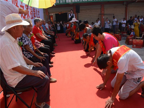 鄉(xiāng)長(zhǎng)吳國(guó)鋒發(fā)表了熱情洋溢的致辭。他首先代表平店鄉(xiāng)黨委、政府、人大向受到表彰的先進(jìn)模范和先進(jìn)家庭表示熱烈的祝賀并致以崇高的敬意。并詳細(xì)闡述了開展“孝善敬老讓愛回家、孝賢之星表彰授牌暨解決獨(dú)居老年人問題、助力脫貧攻堅(jiān)的重大意義,他希望受到表彰的先進(jìn)代表和家庭要珍惜榮譽(yù)、再接再厲,繼續(xù)弘揚(yáng)尊老、敬老、養(yǎng)老、愛老的傳統(tǒng)美德,推動(dòng)全鄉(xiāng)“孝善敬老”文化不斷邁向新臺(tái)階。活動(dòng)現(xiàn)場(chǎng)宣讀了《平店鄉(xiāng)人民政府敦促將被贍養(yǎng)人接入安全住房共同生活的通告》;與會(huì)領(lǐng)導(dǎo)為孝賢之家頒獎(jiǎng)授牌;28個(gè)“孝子孝媳”在臺(tái)上統(tǒng)一施行叩拜大禮;活動(dòng)結(jié)束后,鄉(xiāng)政府指派3名班子領(lǐng)導(dǎo)和10多名工作人員,分別乘坐6臺(tái)輛,由嗩吶隊(duì)開路,風(fēng)風(fēng)光光把28個(gè)老人送回了家。一路引來(lái)不少群眾駐足注目觀看,廣大群眾對(duì)此嘖嘖稱贊、拍手稱快。