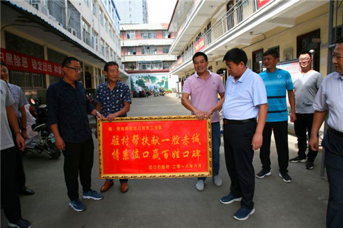 丁喜三代表財(cái)政局黨組對位口村民為財(cái)政局駐村工作隊(duì)贈(zèng)送錦旗和牌匾表示感謝。稱縣財(cái)政局在縣委縣政府正確領(lǐng)導(dǎo)下,對張店鎮(zhèn)位口行政村進(jìn)行駐村幫扶,三年來的駐村工作取得了很大的成績,也存在很多不足,希望位口村廣大群眾對財(cái)政局的駐村扶貧工作多提寶貴意見,同時(shí)對新駐村隊(duì)員提出高的要求,財(cái)政局和位口村干部群眾攜手共同把脫貧攻堅(jiān)工作做好,確保不拖全縣的后腿,在奔小康的路上不落下一人。