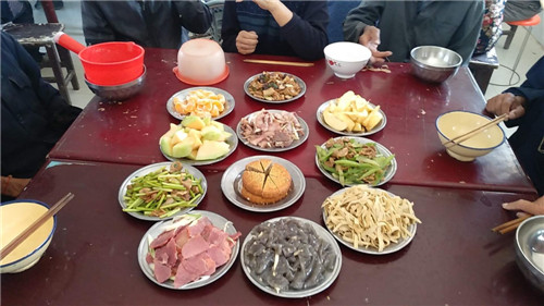 文藝節(jié)目之后,大家一同在敬老院食堂吃團(tuán)圓飯。老人們邊吃邊聊,臉上洋溢著開心幸福的笑容。