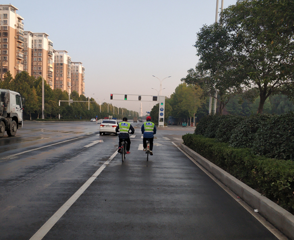 10月3日6時,國際級丈量員、吉林體育學(xué)院教授袁林受中國田徑協(xié)會委派,與周口馬拉松組委會工作人員一起,對周馬新調(diào)整的賽道進(jìn)行精準(zhǔn)丈量。