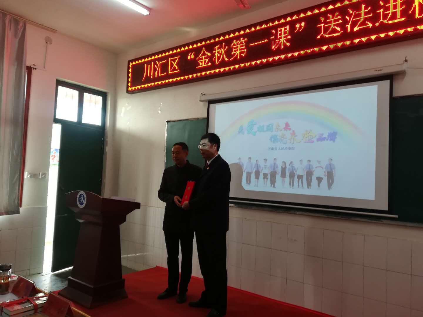 活動(dòng)中,川匯區(qū)人民檢察院黨組書記、檢察長郭煜被聘為周口市第23中法制副校長。
