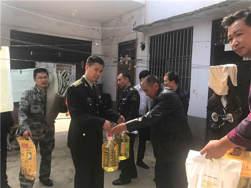當(dāng)日上午,川匯區(qū)武裝部一行和愛心企業(yè)“佳麗地產(chǎn)”黃經(jīng)理一行到中心城區(qū)城南辦事處走訪了90歲抗戰(zhàn)老兵王四海。王四海1948年參軍入伍,隨部隊(duì)一同南征北戰(zhàn),參加解放海南島等戰(zhàn)役。同時(shí),他們還慰問了參加對(duì)越自衛(wèi)反擊戰(zhàn)的62歲老兵李士明等幾名貧困群眾,為他們送去了米面糧油、軍被等慰問品。