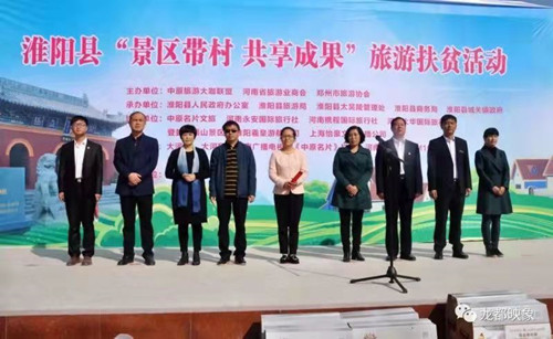 金秋時節(jié),天藍(lán)水碧。11月3日上午,“景區(qū)帶村,共享發(fā)展”旅游扶貧走進(jìn)淮陽活動,在國家級旅游扶貧開發(fā)村、河南省鄉(xiāng)村旅游特色村一一該縣城關(guān)鎮(zhèn)從莊行政村隆重舉行。來自河南各地市25個旅游團(tuán)隊(duì)1400余名游客參加了此次活動,河南廣播電視臺《中原名片》欄目全程直播活動情況,直播間觀眾互動達(dá)55萬多人次。開幕式上,副縣長張潔致辭,縣政府辦公室駐從莊村第一書記推介從莊行政村鄉(xiāng)村旅游情況,縣旅游局與河南永安國際旅行社、河南攜程國際旅行社簽訂戰(zhàn)略合作協(xié)議。河南大華國際旅行社、河南攜程國際旅行社、上海恰豪文化傳播有限公司、中原旅游大咖聯(lián)盟等企業(yè)為從莊行政村及貧困戶捐贈油、米、棉被等慰問品及現(xiàn)金2萬元。縣電商服務(wù)平臺、從莊村民展銷布老虎、泥泥狗、土雞蛋、兔子肉、干野菜等農(nóng)副手工產(chǎn)品40余樣?;顒咏Y(jié)束后,全體游客赴龍湖國家濕地公園、太昊陵景區(qū)觀光游覽。