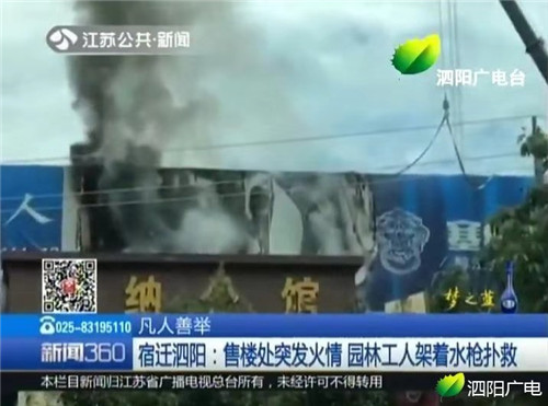 9月5日上午10時(shí)許,江蘇省泗陽(yáng)縣北京東路塞納公館營(yíng)銷(xiāo)中心因招牌頂部電焊火星濺落,致使門(mén)頭起火。起火點(diǎn)距離地面約5米,滅火器等常用滅火設(shè)備無(wú)法起作用。為防止意外,售樓處工作人員及時(shí)疏散群眾,同時(shí)撥打119救火電話。就在此時(shí),身為泗陽(yáng)縣園林綠化管理處的技術(shù)員曹書(shū)志,正開(kāi)著灑水車(chē)進(jìn)行綠化帶澆水作業(yè),見(jiàn)到路邊濃煙滾滾,火勢(shì)兇猛,曹書(shū)志二話不說(shuō),立刻把灑水車(chē)開(kāi)到著火點(diǎn),不顧生命危險(xiǎn)下車(chē),和其他3名工人,迅速打開(kāi)前噴水頭和后部水炮供水的副發(fā)動(dòng)機(jī)進(jìn)行滅火,在持續(xù)噴射十余分鐘后成功將火撲滅。