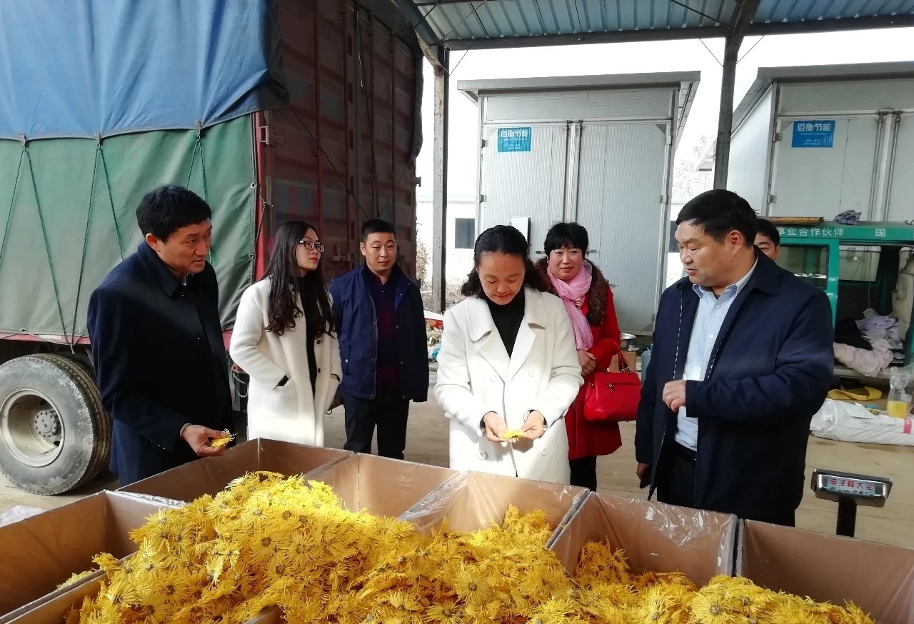 然而,放到一年前,種金絲皇菊,誰(shuí)都沒(méi)這個(gè)底氣。去年10月底,張店村黨支部書(shū)記張琳,發(fā)現(xiàn)處在村里的烤煙站突然熱鬧起來(lái)。一問(wèn),方才知道,宋河鎮(zhèn)菊鼎合作社法人周安營(yíng)在此烘制金絲皇菊。細(xì)聊之后,張琳心動(dòng)了,張店村土地肥沃,適宜種植;周安營(yíng)種植多年,可以聘請(qǐng)來(lái)當(dāng)技術(shù)指導(dǎo);村里有2000多村民,完全可以滿足菊花從育苗、定植、田間管理、采摘等大量用工需求;現(xiàn)成的烤煙設(shè)備可以一舉兩得……張琳隨即召開(kāi)支部會(huì)、村民代表會(huì),“他說(shuō)得恁好,他咋不種?”“干部的話只能信三分?!辈辉耄虼濉皟晌边^(guò)去5年多的“軟弱渙散”,村民們更多選擇了觀望。