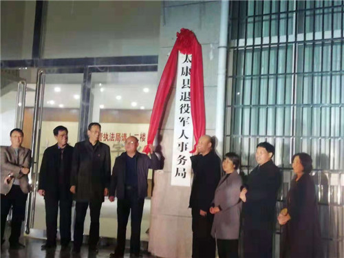 11月27日,太康縣退役軍人事務(wù)局掛牌成立??h委常委、常務(wù)副縣長(zhǎng)張保華,縣委常委、副縣長(zhǎng)韓維俊,縣政協(xié)副主席、縣民政局局長(zhǎng)劉鳳芹出席揭牌儀式??h編辦主任毛雙龍、縣退役軍人事務(wù)局干部職工參加揭牌儀式。