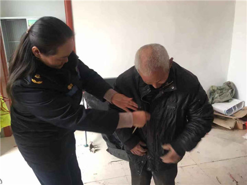 7日上午,該局派人將這些愛心棉衣一一送到困難戶手中。
