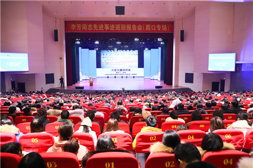 12月12日上午,李芳同志先進事跡巡回報告會(周口專場)在周口師范學(xué)院舉行,來自全市教育系統(tǒng)的1000余名干部、教師聆聽了李芳的先進事跡和生活點滴,感受李芳高尚的師德光輝,接受心靈的洗禮。