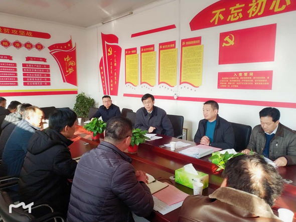 縣委書記馬明超在丁洼村室聽取市級(jí)評(píng)估反饋問題整改工作匯報(bào)