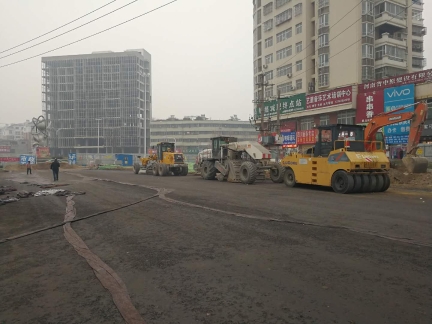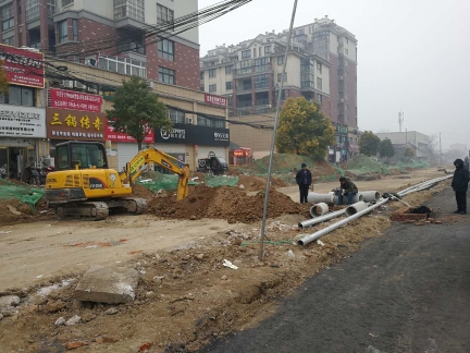記者今日走訪漢陽路中段(穎河路-建設(shè)路)看到,目前該路段機(jī)動(dòng)車道已鋪上黑色的混凝土物質(zhì),人行道則是壓實(shí)過的土路。壓路機(jī)等設(shè)備??吭诘缆穬深^,并未啟動(dòng),有兩臺(tái)挖掘機(jī)及數(shù)十名工人在人行道上,鋪設(shè)下水道。施工路段內(nèi),有不少菜販在沿街叫賣。